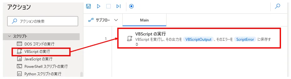 現状、ExcelからPDFへの変換を行うアクションは存在しないためVBScriptを利用して設定します。