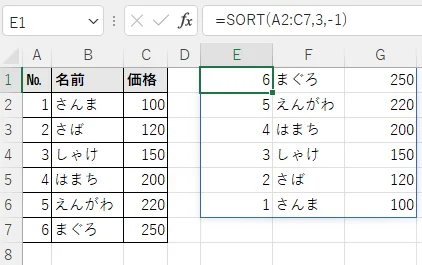 例えばセル範囲を並び替えるSORT関数を利用します。