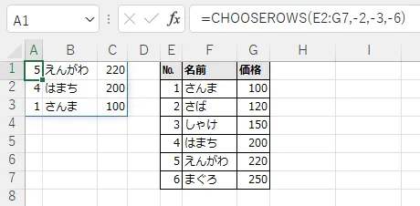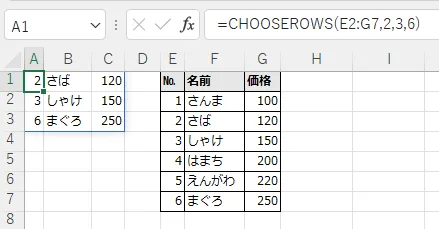 CHOOSEROWS関数とCHOOSECOLS関数は行/列の位置を指定します。