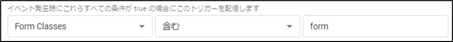 対象に「Form Element(CSSセレクタ)」、条件には「CSS セレクタに一致する」または「CSS セレクタに一致しない」、値にformタグのCSSセレクタを指定します。
