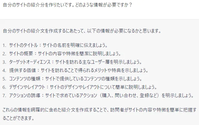 ChatGPTにインタビューするイメージで進めると作りやすいです。