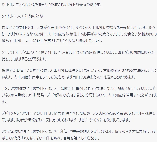 一般的な題材であればある程度、ChatGPT任せにすることが可能です。
