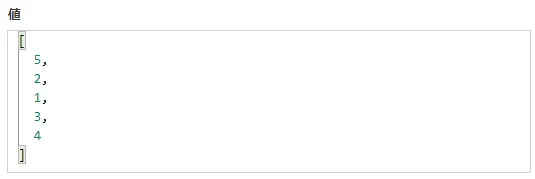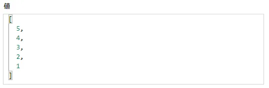次の式を実行すると、反対に並び替えた配列(アレイ)が結果になります。