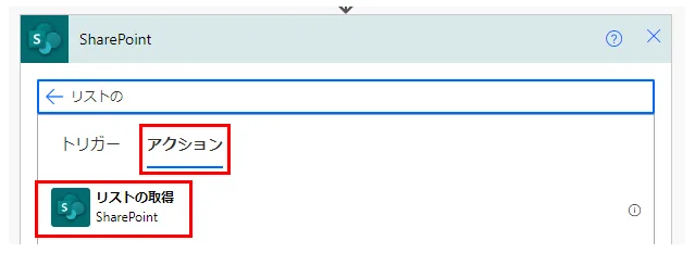 「アクション」より「リストの取得」を選択します。