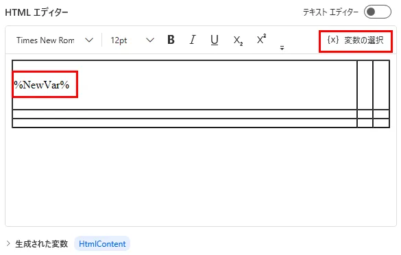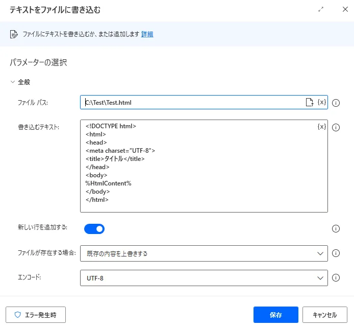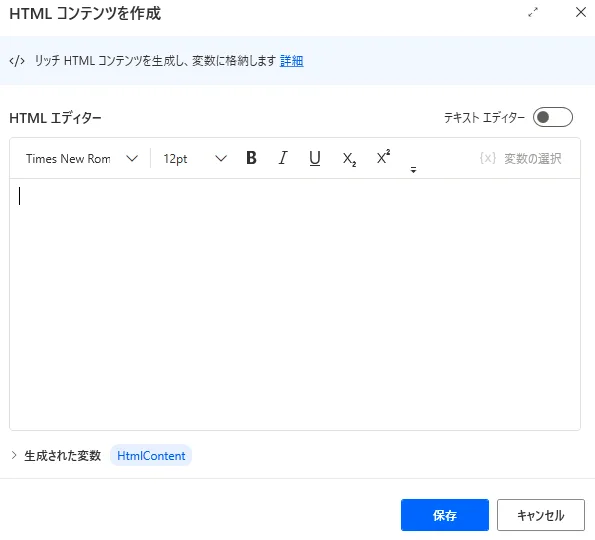 Power Automate Desktop「HTML コンテンツを作成」アクション