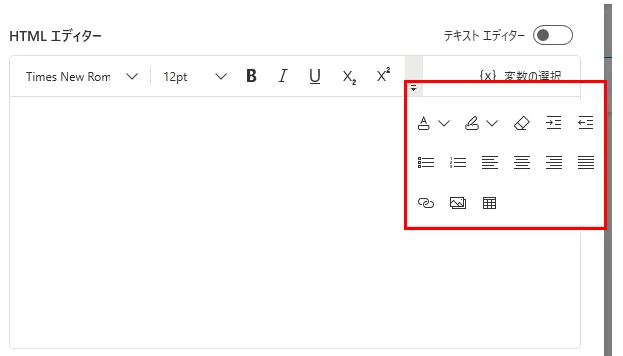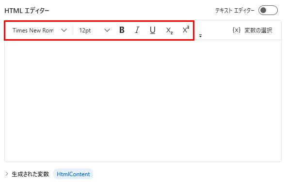 最初から表示されている部分で、フォントやサイズ、太字/イタリックなどの設定が可能です。