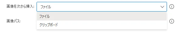 クリップボードの画像を挿入します。追加で指定する項目はありません。
